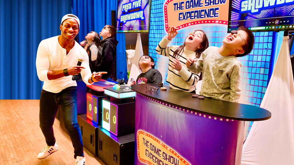 At The Game Show Experience, we don’t just host mobile game shows — we engineer epic, high-energy productions that turn ordinary events into unforgettable, full-throttle fun. From coast to coast, we bring the lights, sounds, and thrills of a real TV game show straight to your stage — or your screen! Whether it’s a corporate event, school assembly, conference crowd-breaker, or virtual team-building game show, we come locked and loaded with: 💡 Full-room dynamic lighting to set the stage 🎤 Pro sound systems that boom with energy 🎮 Digital leaderboards to fuel friendly competition 🎯 Real-deal podiums with buzzer systems 🌟 Giant projection screens & stunning backdrops 🎙️ Charismatic live hosts that keep the laughs flowing This isn’t some rinky-dink trivia night — this is premium mobile game show production built to captivate your crowd. Want to turn it up a notch? We offer fully customized branding, theme-based game formats, and tailored trivia questions to match your company, school, or event goals. No venue is too wild. No audience too shy. If you can dream it, The Game Show Experience will hype it. Live or virtual. Corporate or campus. East Coast to West. We bring the buzzers, you bring the buzz.